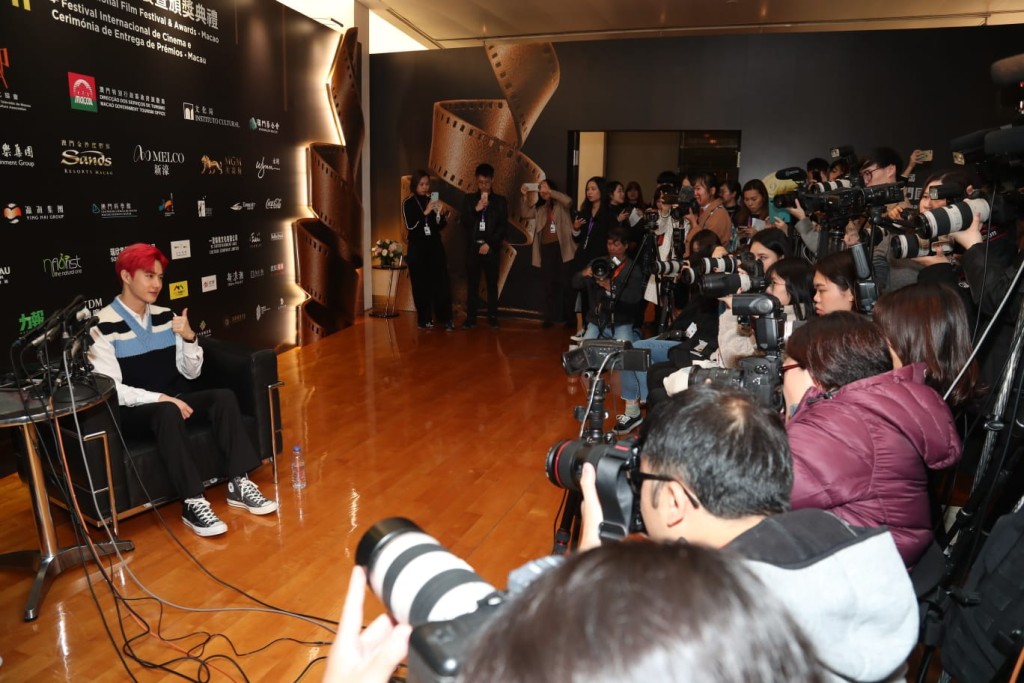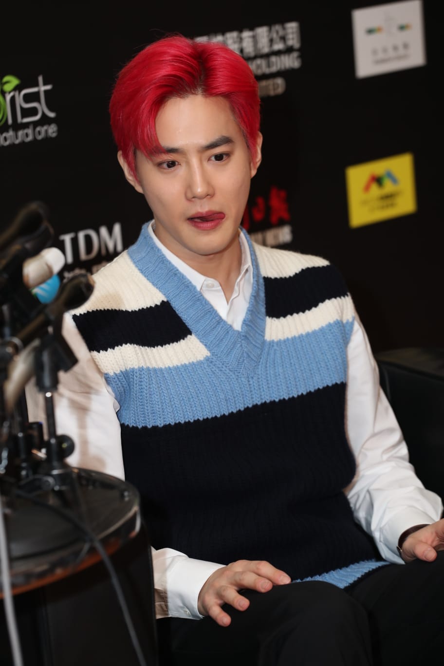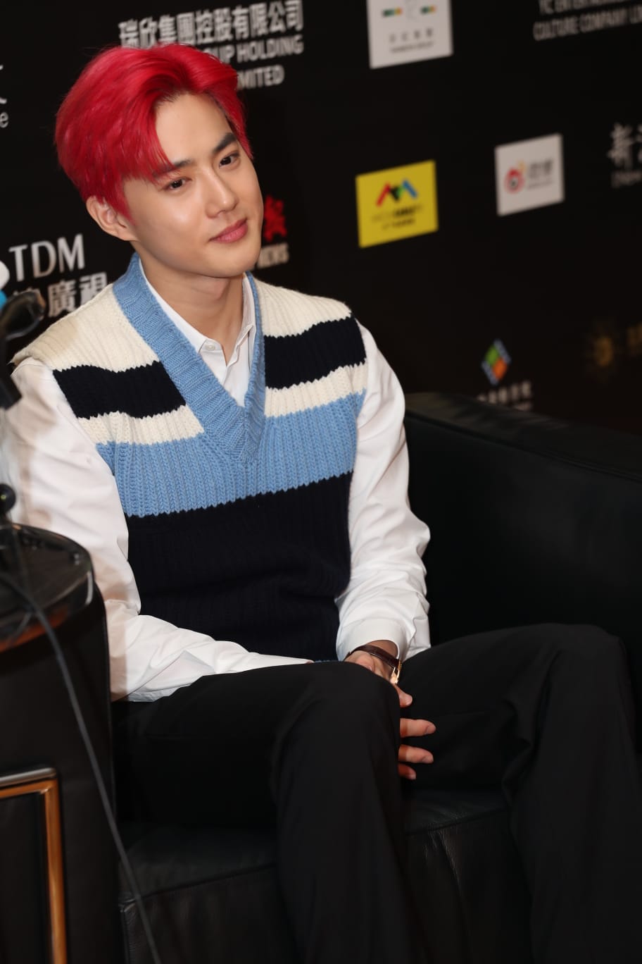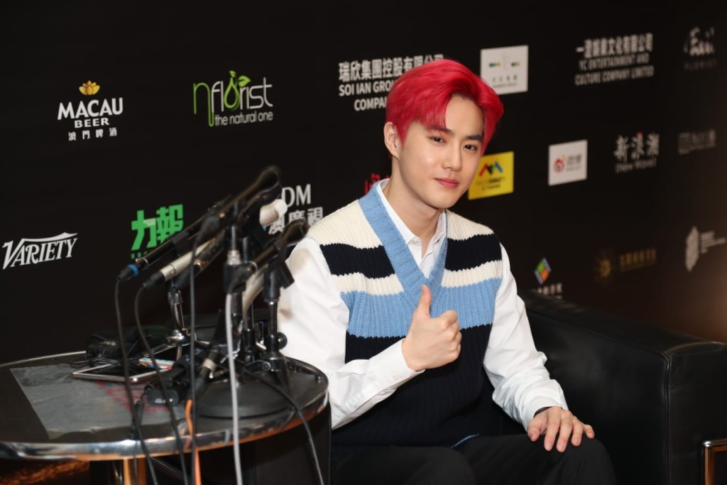 Suho早前在社交網分享看過電影《Jocker》,他笑謂看了兩次,很欣賞主角Joaquin Phoenix,希望吸收了他的演技,再應用在明年重演的音樂劇《笑面人》入面,令自己的演出比之前更成熟。另外,有傳媒問到他對瘋狂粉絲的看法,被翻譯以與影展無關擋下。