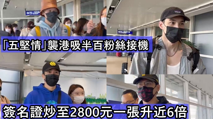 獨家丨「五堅情」襲港吸半百粉絲接機 簽名證炒至2800元一張升近6倍