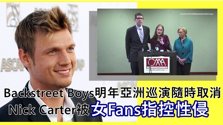 將於明年展開亞洲巡迴演唱會的美國男子組合Backstreet Boys,成員之一的Nick Carter被一名女粉絲指控性侵。