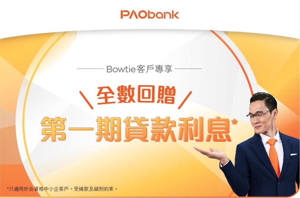 Bowtie中小企客戶成功於PAOB申請企業分期貸款,可獲全數回贈第一期貸款利息,貸款額高達200萬元,利息按日計算,免手續費之餘,提早還款更免罰款;而合資格PAOB中小企客戶成功於Bowtie申請指定健康服務,更可獲1200元 HKTVmall現金券 。