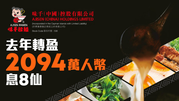 味千中國538|去年扭虧為盈 賺2094萬人幣 息8仙