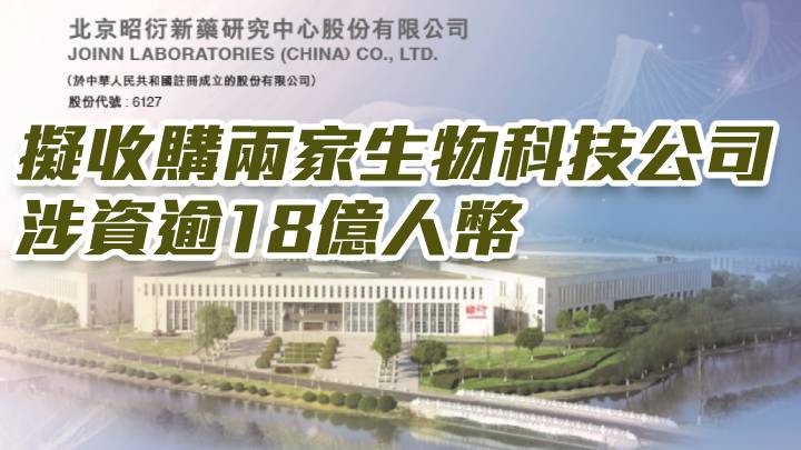 昭衍新藥6127|擬收購兩家生物科技公司 涉資逾18億人幣