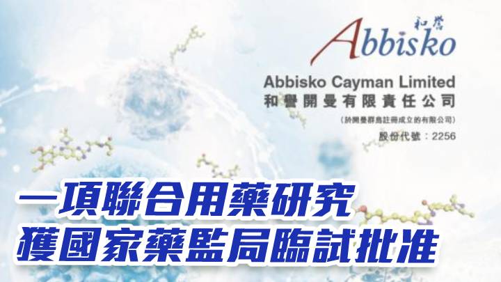 和譽(02256)公布,公司之附屬公司上海和譽生物醫藥科技有限公司的在研泛FGFR抑制劑ABSK091與抗PD-L1抗體替雷利珠單抗聯合用藥在尿路上皮癌中的II期研究獲得中華人民共和國國家藥品監督管理局的臨床試驗批准。