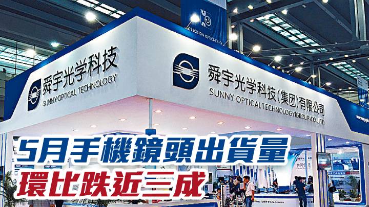 舜宇光學科技2382|5月手機鏡頭出貨量環比跌近三成