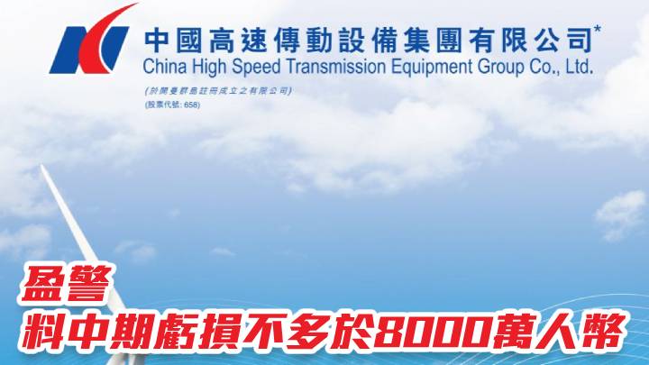 中國高速傳動658|盈警 料中期虧損不多於8000萬人幣