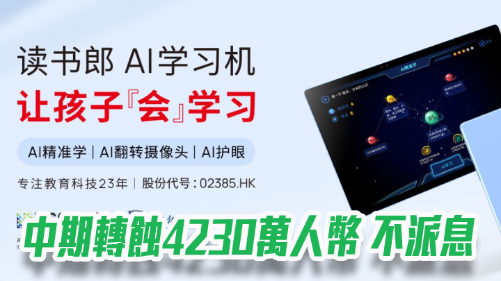讀書郎2385|中期盈轉虧 蝕4230萬人幣 不派息
