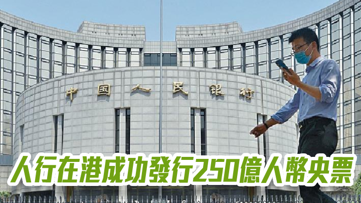 中國人民銀行表示,在香港成功發行兩期人民幣央行票據,其中3個月期央行票據100億元(人民幣,下同),1年期央行票據150億元,中標利率分別為1.9厘和2.3厘。