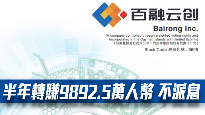 百融雲創6608|半年轉賺9892.5萬人幣 不派息