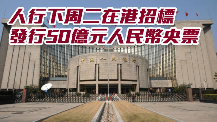 人行下周二在港招標 發行50億元人民幣央票