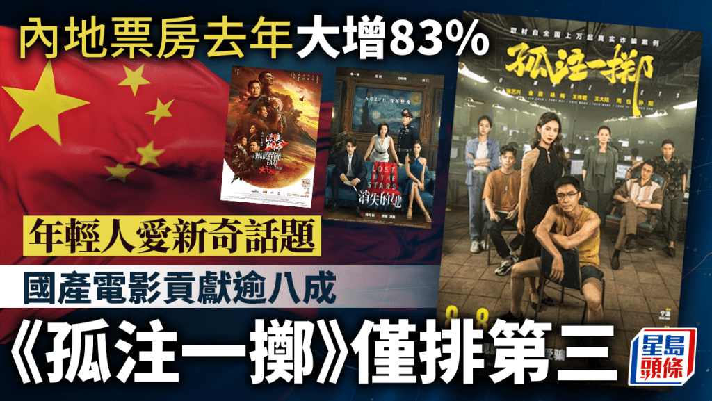 內地票房去年大增83% 年輕人愛新奇話題 國產電影貢獻逾八成 《孤注一擲》僅排全年第三