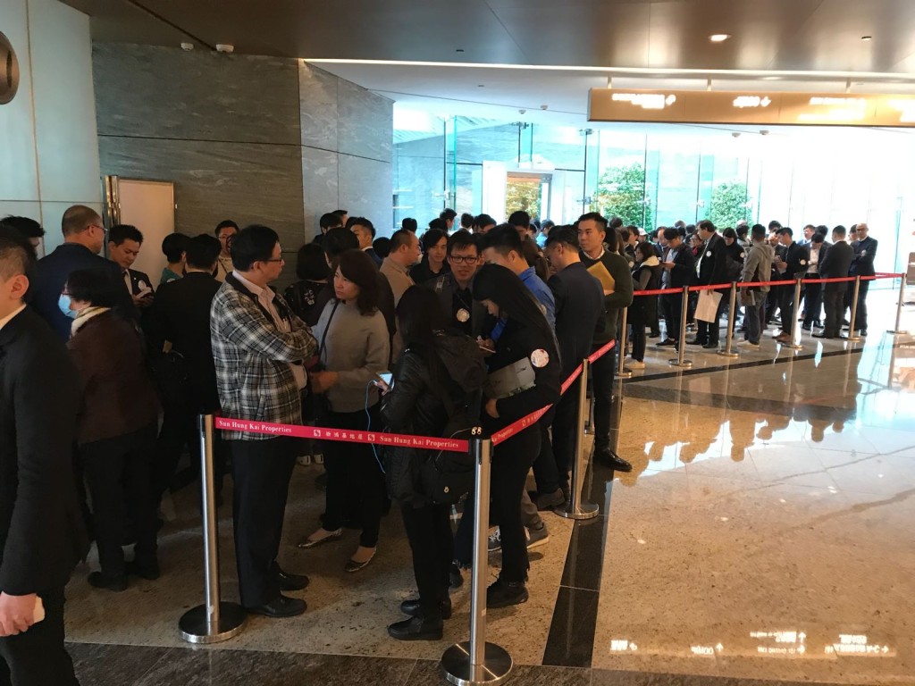 該盤今日首度開放設於九龍站環球貿易廣場的示範單位,現場所見,不少出現排隊人龍。