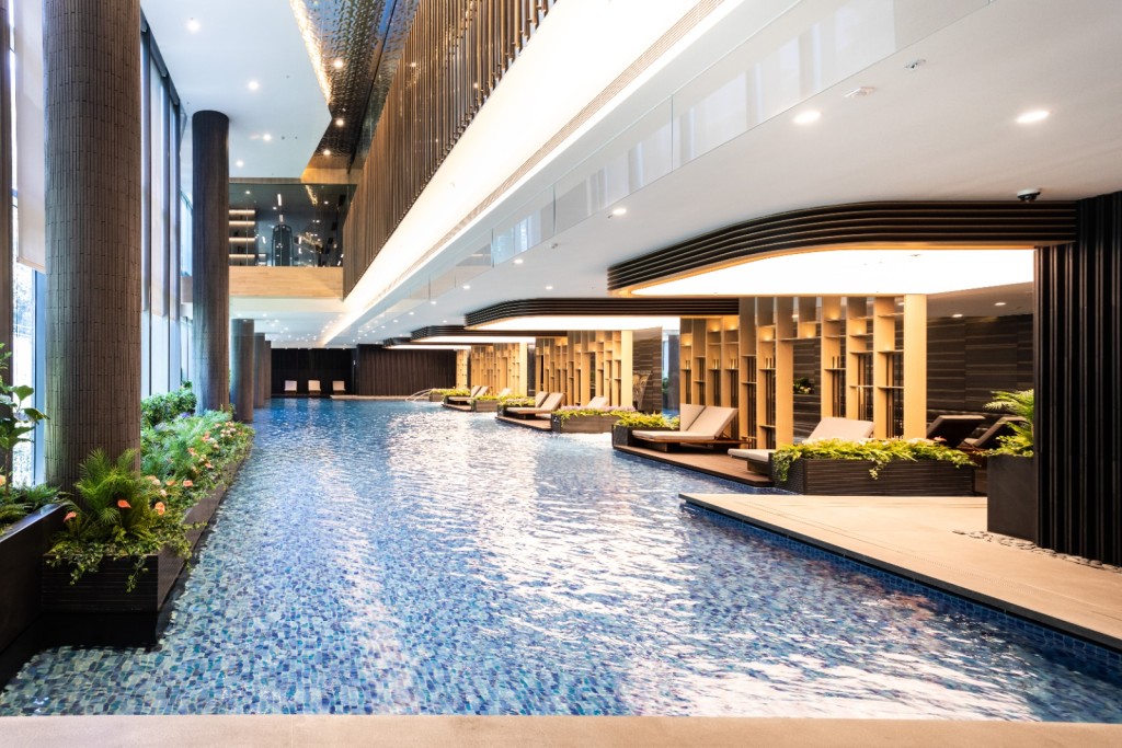 萬科香港項目部副總裁梁啟安表示,項目會所Club Le Pon在為住戶營造度假氛圍,除了提供近20項動靜設施外,設計亦特別透過大型落地玻璃,將屋苑範圍內的自然景致投射入室內,融合室內與戶外空間。同時,項目亦非常重視園林景觀的佈局,綠化帶佔地8.7萬方呎,當中包括項目內的Sky Bridge,更是將地面的綠化休閒空間向上延伸至住戶專屬的天際走廊。