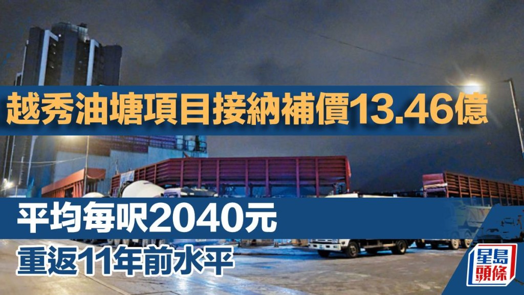 越秀油塘項目接納補價13.46億 平均每呎2040元 重返11年前水平