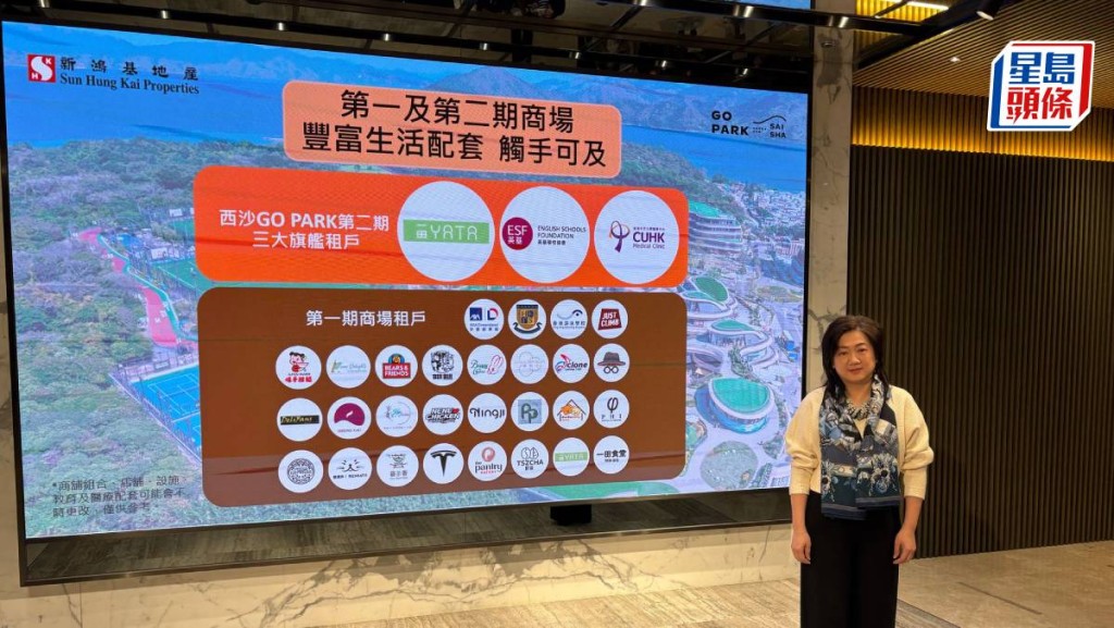 新地租務部總經理周淑雯表示,GO PARK 第2期商場面積約5.6萬方呎,位於住宅項目所在位置,預計會有約40間租戶進駐,配合SIERRA SEA年底入伙的步伐,於第4季陸續試業,為附近居民提供生活所需。其中今落實會有一田超市、英基啟新書院幼稚園及中大醫務中心進駐。