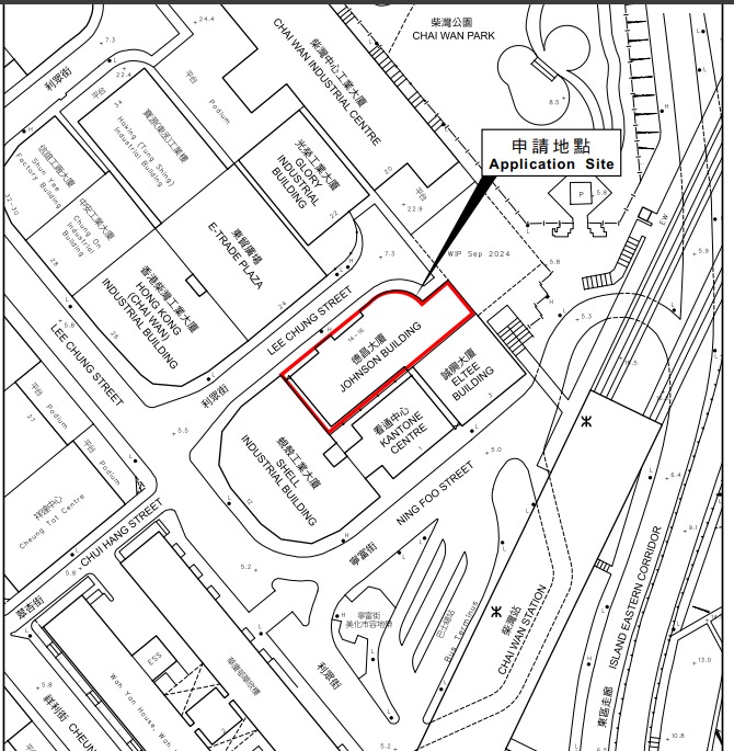 據城規會文件顯示,項目位於柴灣利眾街14至16號(柴灣內地段第12號及第43號),目前屬「其他指定用途」註明「商貿」地帶,申請改劃為擬議酒店並略為放寬地積比率限制。