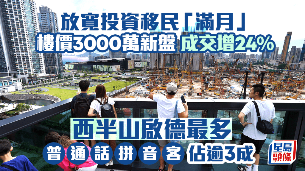 放寬投資移民「滿月」 樓價3000萬新盤成交增24% 西半山啟德最多 普通話拼音客佔逾三成