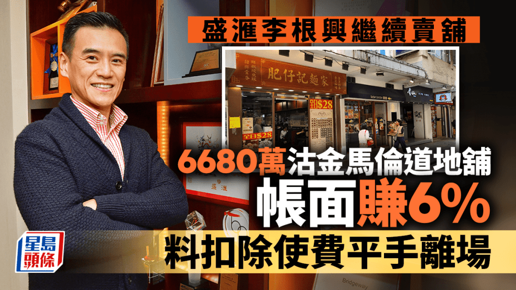 相關文章:盛滙李根興終止11連蝕沽 放售金馬倫道舖帳賺6% 料扣除使費平手離場「今個月重新入市」
