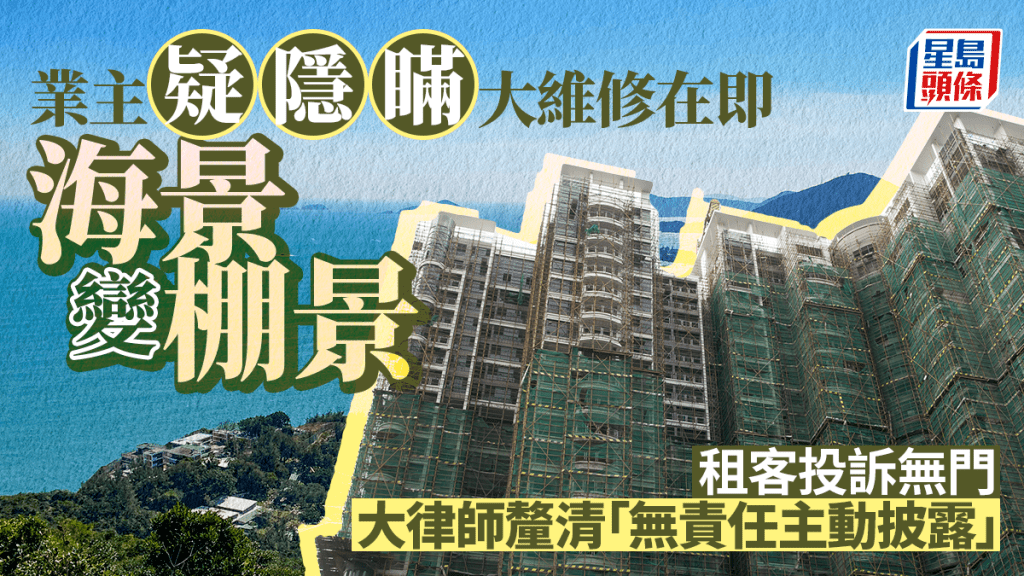 延伸閱讀:業主疑隱瞞大維修在即 海景變棚景 租客投訴無門 大律師釐清「無責任主動披露」