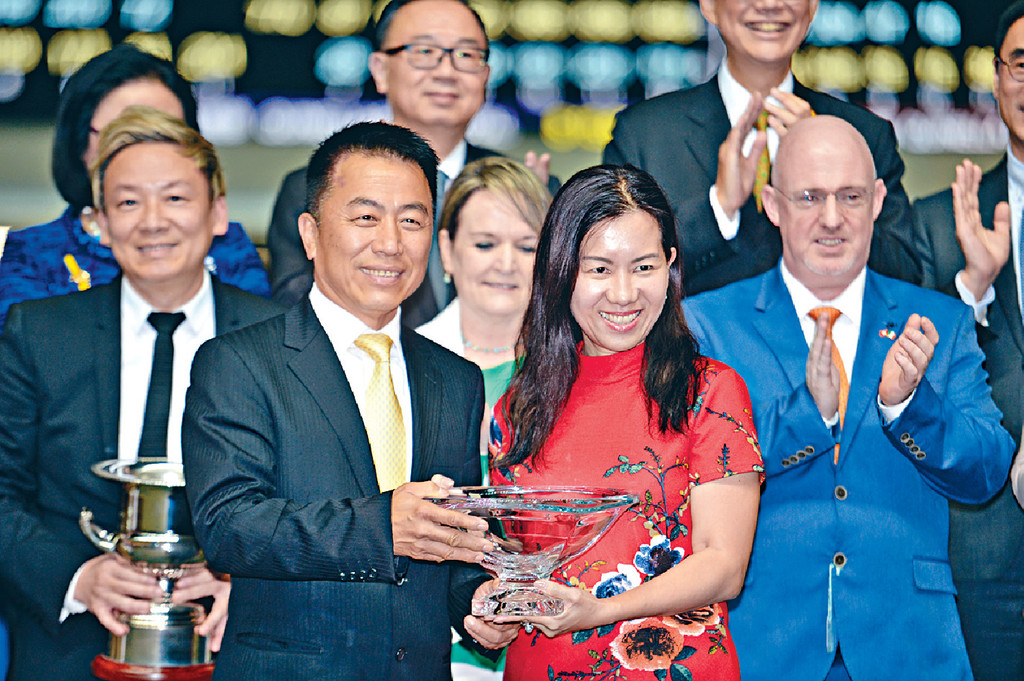 姚本輝昨晚連捧兩盃,先是在第三場憑「龍船鼓響」奪得跑馬地銀瓶,而幕後同主的「翠龍」跑季軍,主理人劉業強透露:「賽前我認為『龍船鼓響』機會不俗,因為姚本輝保養這匹七歲馬做得很好,結果陣上潘明輝走位亦機智。至於『翠龍』上仗賽後體力下降,所以送牠到從化休養,儲足體力再戰,如今跑第三我也感到滿意。」