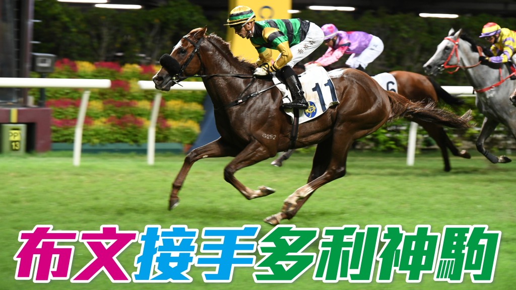 布文當晚將策騎「飛凡」、「多利神駒」、「好拍檔」、「財駿」、「對衡之星」、「三劍俠」、「勤德威力」、「管之友」及「盈嘉輝」。其中韋達馬房旗下的「多利神駒」,近七戰都配希威森獲一冠一季,今場初配布文,而希威森則策騎同場的「肥仔醒醒」。
