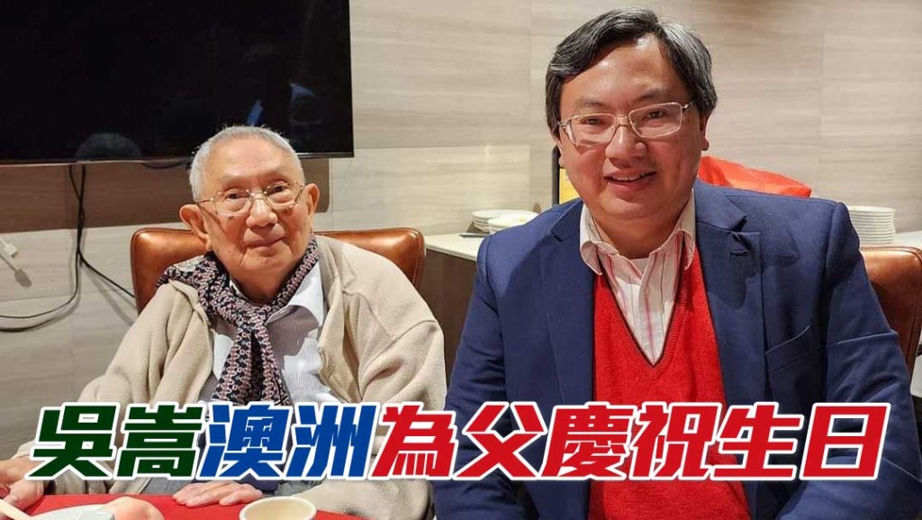 吳嵩身在澳洲為他的父親慶祝九十歲大壽。