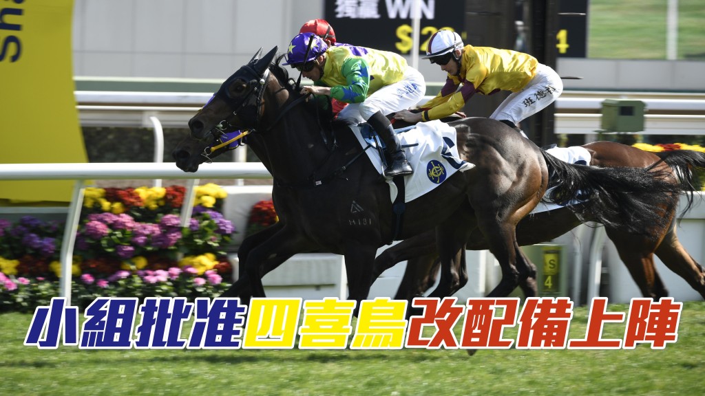練馬師黎昭昇申請准許上仗勝出的「四喜鳥」在上述賽事中除去頭罩及加佩羊毛面箍出賽,受薪董事小組已批准其申請。