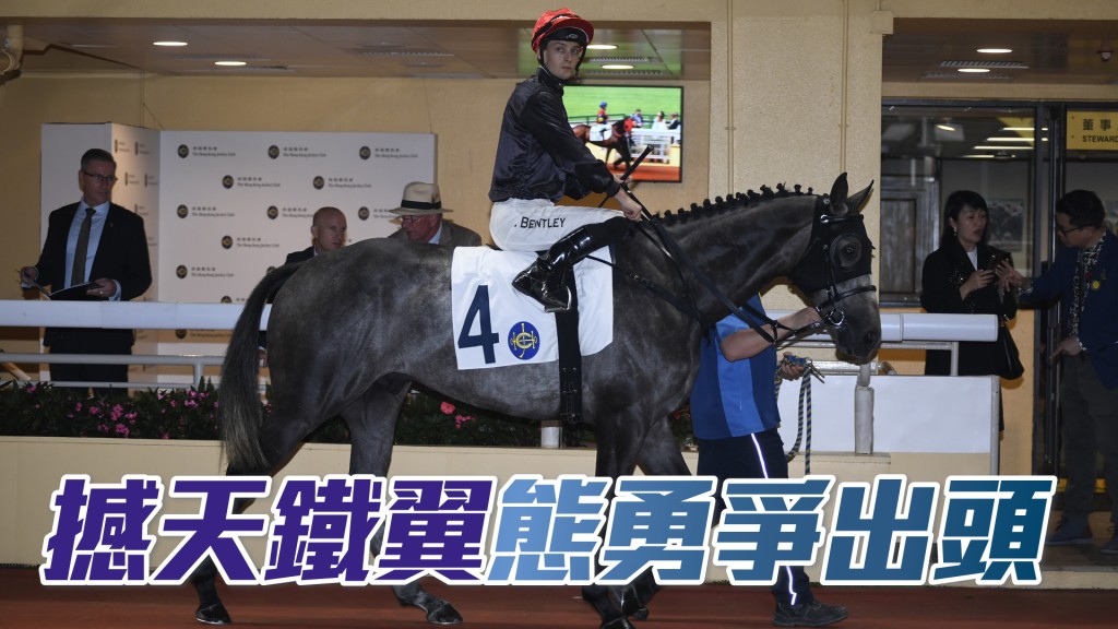 「撼天鐵翼」乃南非大馬主及育馬者Mary Slack首匹引入香港賽駒,最近此駒先後在谷草千二米和田草千四米上名。周日「撼天鐵翼」將再跑田草千四米,練者分析說:「現年四歲的『撼天鐵翼』是北半球馬,一般需要較長時間適應香港天氣環境和賽事模式,所以即使暫時尚未贏馬,但能接連在賽事上名,其演出已令我滿足。近期『撼天鐵翼』操練正常,狀態維持在作戰水準,周日勢將以良好狀態上陣,我將在排位後研究賽事形勢,再決定合適戰略,希望馬兒演出再進,爭取在港首場頭馬。」