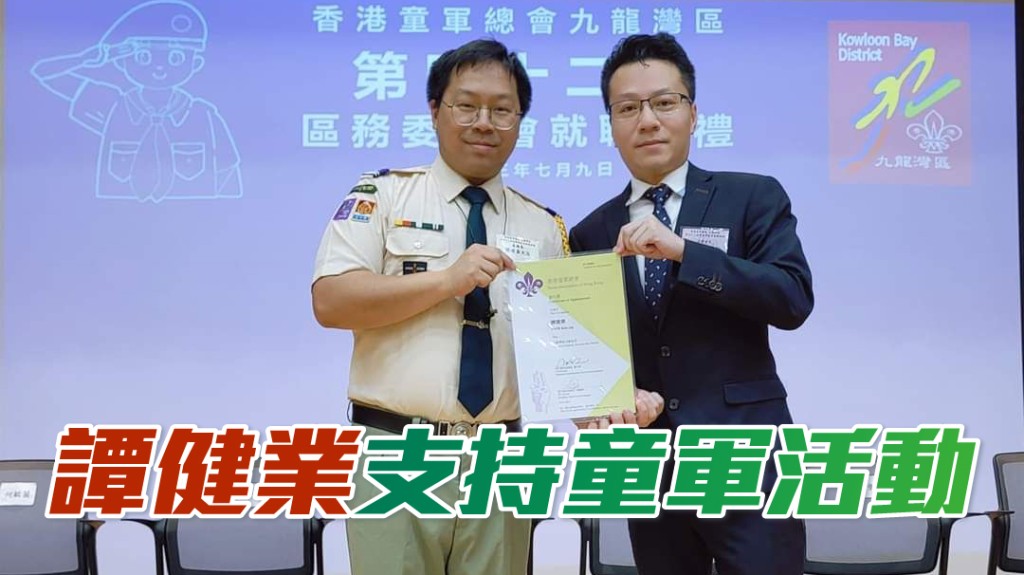 日前譚大律師在社交平台,分享了他出席「香港童軍總會九龍灣區」區務委員會就職典禮,並繼續獲委任「九龍灣區名譽會長」,譚大律師寫上「因童軍活動是很有意義的活動,很值得支持。」
