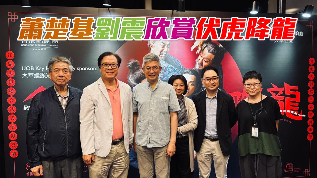 蕭楚基分享了他日前觀賞香港話劇團的最新喜劇《伏虎降龍》後,與一眾台前幕後演員大合照,蕭楚基除了感謝他們的傾力演出外,也答謝文化及體育旅遊副局長劉震來臨支持香港話劇團。