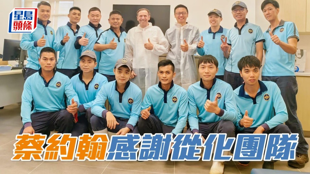蔡約翰探望一班從化夥記,為他們打打氣。