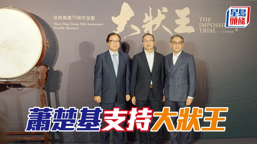 「飛躍精英」馬主蕭楚基是香港話劇團理事會主席,昨晚他和律政司司長林定國、財政司司長陳茂波、西九文化管理局表演藝術委員會主席翟紹唐、西九文化區管理區行政總裁馮程淑儀、西九文化區管理局表演藝術行政總監譚兆民等人一起支持《大狀王》。