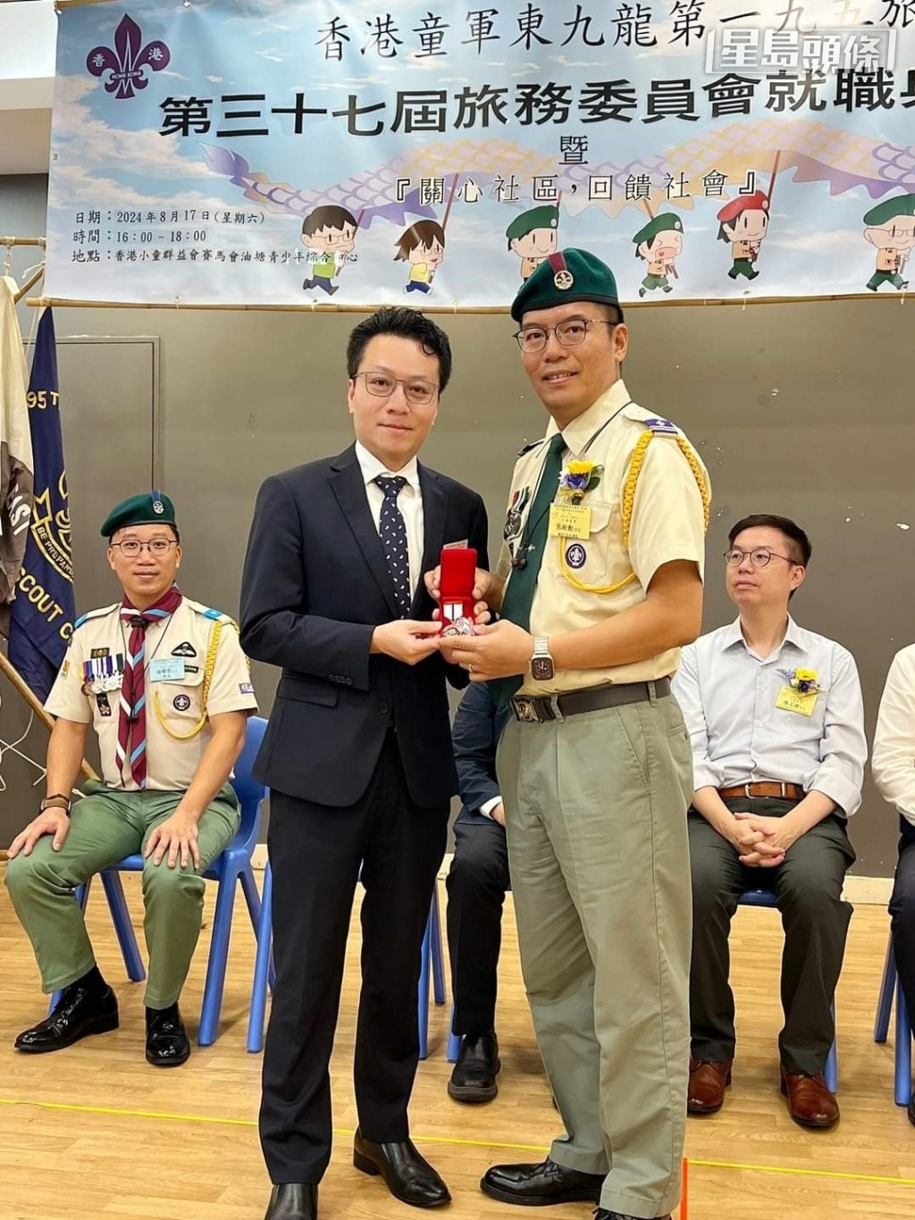 雖然譚大律師平日公務繁忙,但不時抽空做義務工作,他在其社交平台分享了以香港童軍總會東九龍第195旅副主席身份, 出席東九龍第195旅, 第37屆旅務委員會就職典禮,並獲香港童軍總會頒發「童心抗疫獎章」,並與童軍分享,十分有意義。