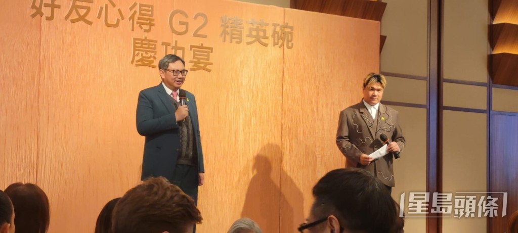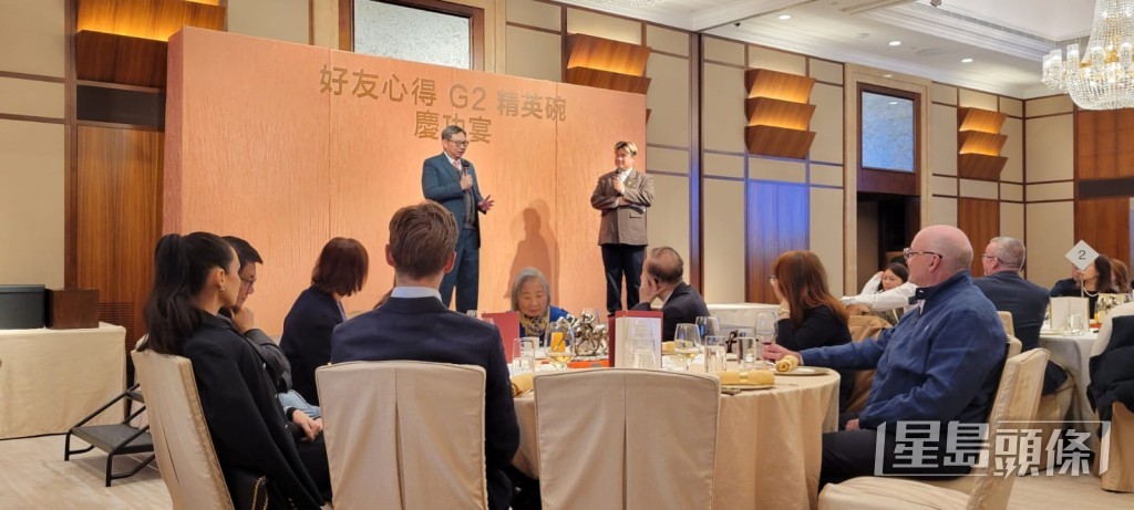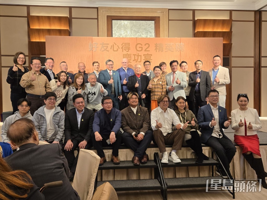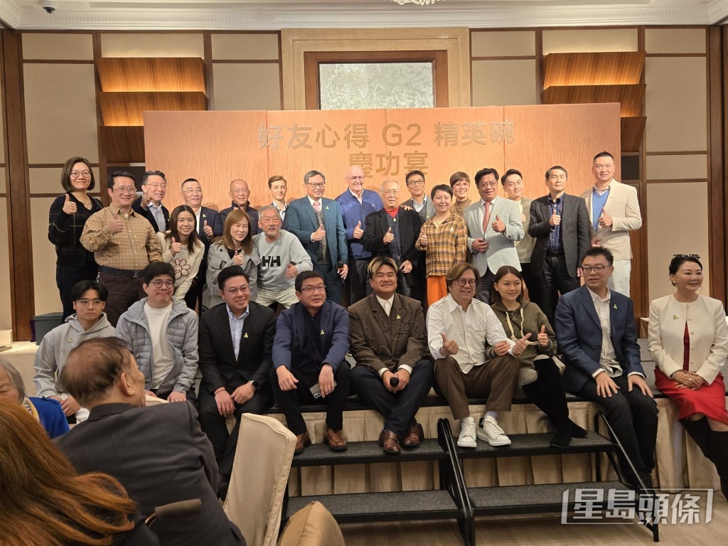 七歲馬希廄「好友心得」今季表現回春,季內三連勝,早前更在班德禮胯下造出快時間勝出G2精英碗,表現亮麗。昨晚(11月20日)「好友心得」馬主德心團體在跑馬地山光道會所擺慶功宴,除了贏馬功臣希斯、希廄副練黃志雄、馬房團體、騎師班德禮外,馬會高層夏定安和鄭奇龍均有出席。另外,騎埋本月30日便離港的董明朗均有獲邀出席。