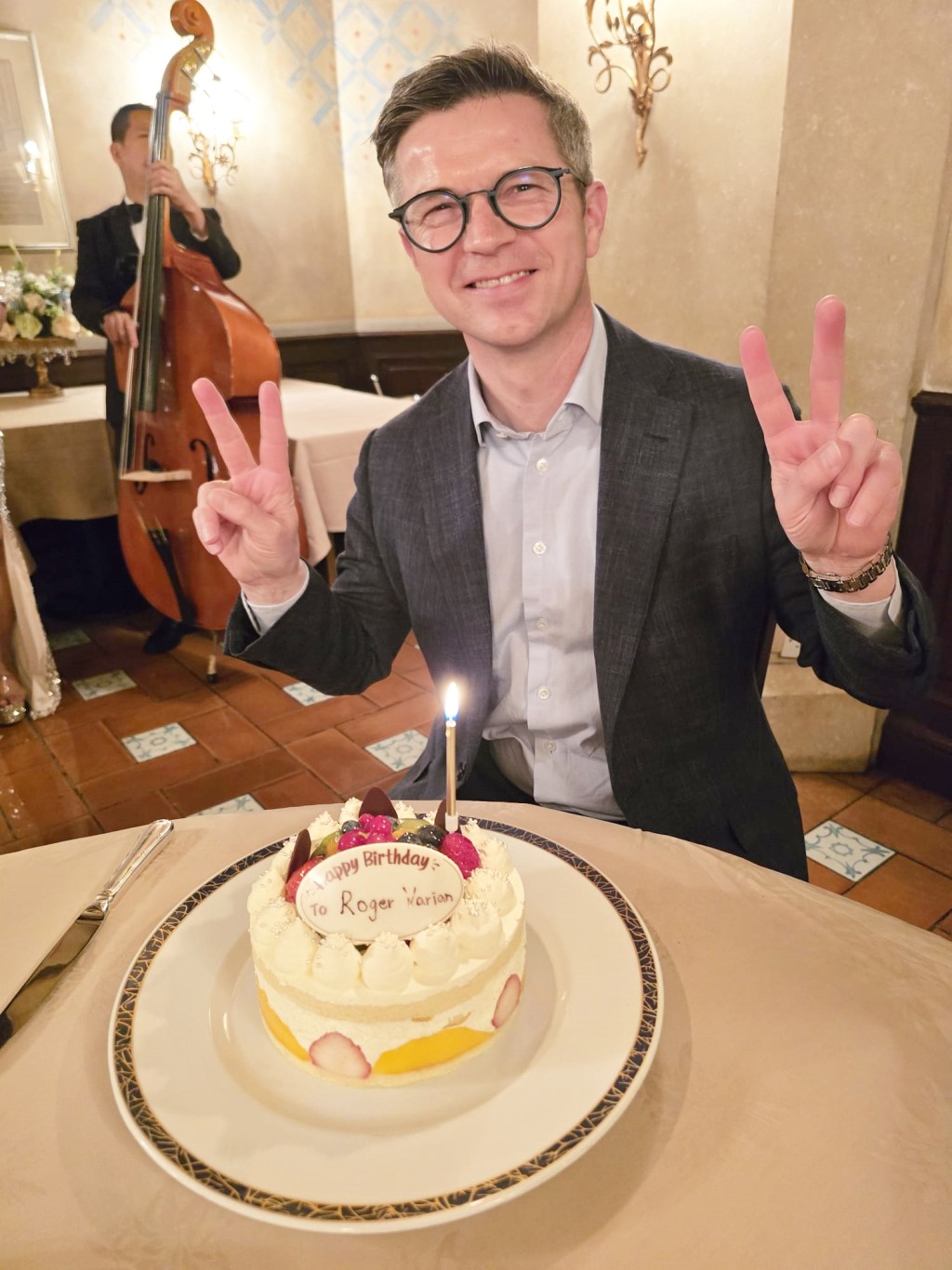 昨晚陳家樑宴請韋利安晚宴,並為對方慶祝生日,令練者喜出望外。昨晚或許是這位英國練馬師在香港首次食生日蛋糕。