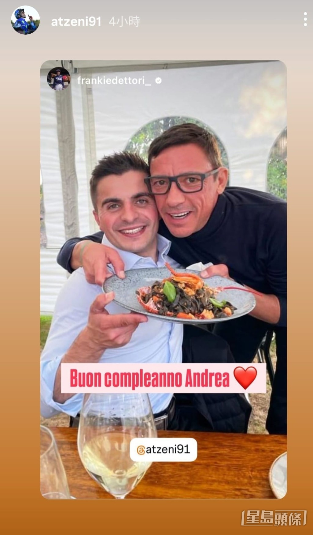 戴圖理寫上Buon compleanno Andrea,用意大利語意大利語祝福對方生日快樂,非常有心。