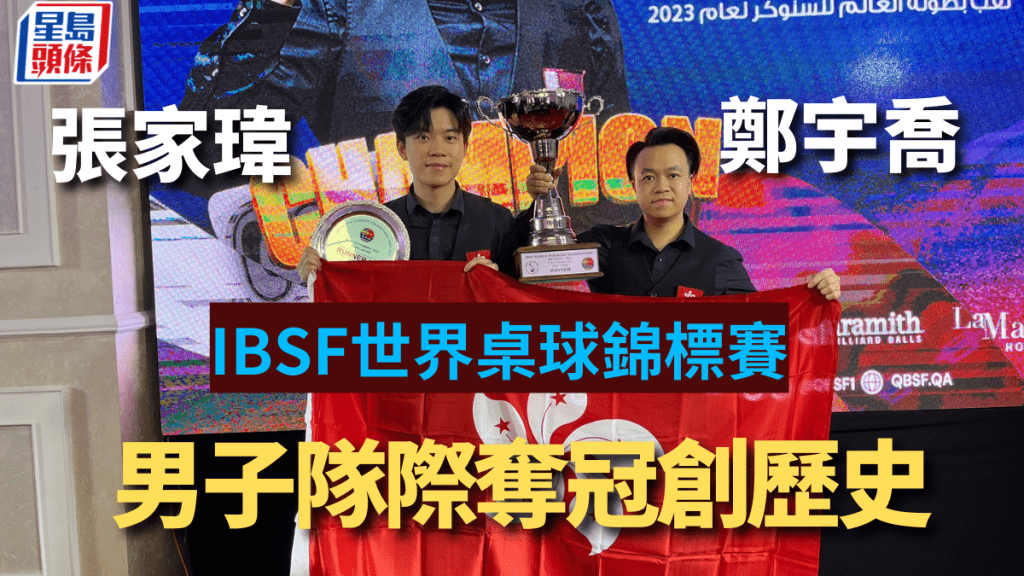香港代表張家瑋、鄭宇喬,在卡塔爾進行的世界桌球錦標賽男子隊際賽決賽,擊敗塞浦路斯對手,勇奪冠軍,亦是香港桌球運動員在這項隊際賽事首度稱王。兩人在晉級過程先後淘汰愛爾蘭、伊朗及波蘭,決賽亦以局數4:2取勝。
