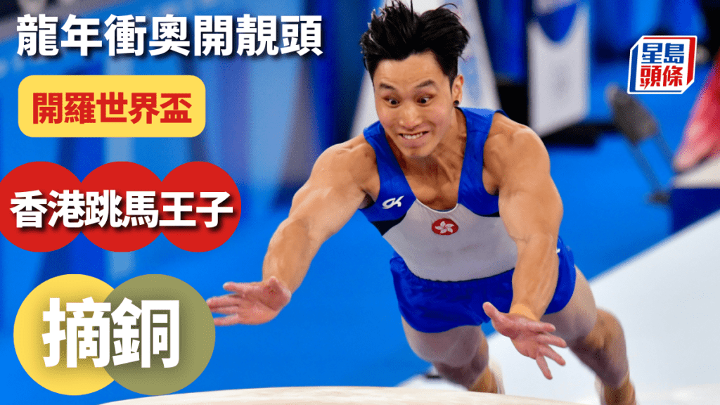 香港「跳馬王子」石偉雄龍年衝奧有個好開始!他在香港時間周日晚上在開羅體操世界盃跳馬決賽,在首跳「李世光2」(難度分6.0)及第二跳「德拉古列斯庫」(簡稱『德古』(難度分5.6)分別以14.830及14.770,平均分14.800奪得一面銅牌。