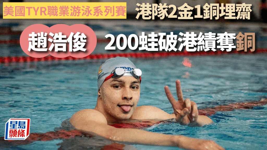 一連4日在美國聖安東尼奧舉行的TYR職業游泳系列賽在香港時間周日早上完成所有比賽,繼泳后何詩蓓(Siobhan)早前奪得2面金牌後(100米及200米自由泳),趙浩俊(Adam)在主項男子200米蛙泳決賽,以刷新香港紀錄的2分11秒16奪得銅牌。