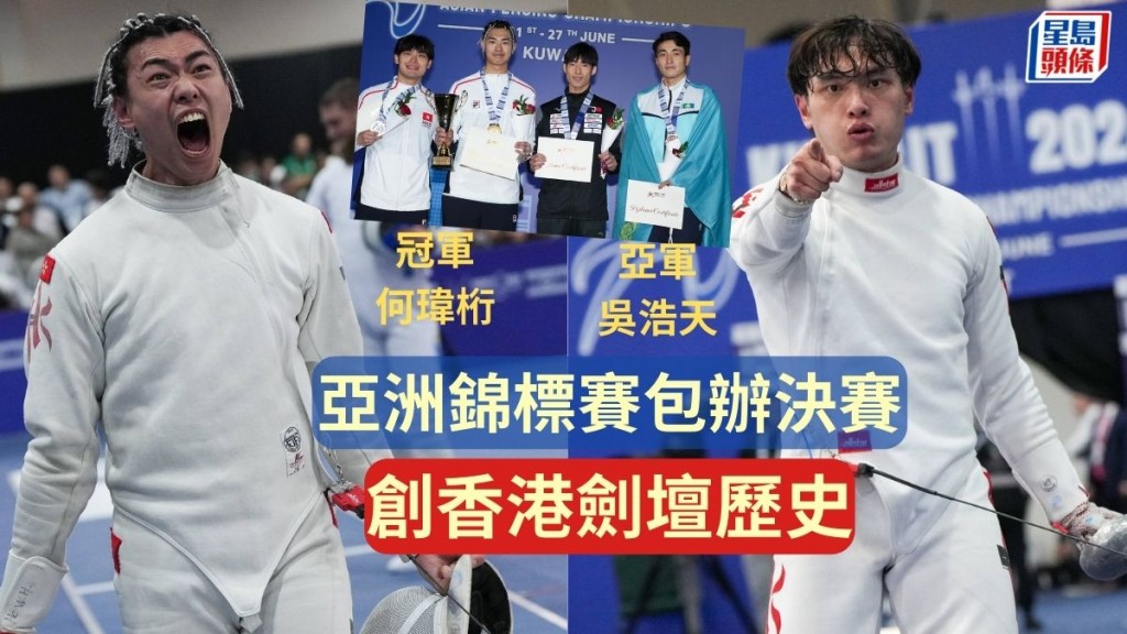 2位香港男子重劍代表何瑋桁及吳浩天,齊齊在科威特舉行的亞洲劍擊錦標賽為港隊創造歷史!他們周日晚在男子重劍個人賽一同殺入決賽,這不但是香港劍壇第一次包辦亞錦賽決賽席位,亦是2人首闖本賽的獎牌舞台,最終何瑋桁以一劍之微的15:14奠勝,是香港男重第一人,下月將以「亞洲冠軍」身份首戰巴黎奧運,賽後坦言:「信心大增。」