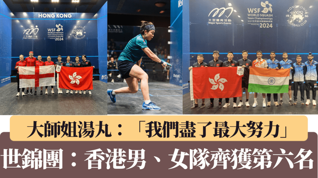 經歷漫長的6天比賽後,東道主香港男、女子隊周六晚在香港足球會舉行的WSF世界壁球團體錦標賽5至6名次賽,分別不敵英國及印度,同以第6名完成今屆賽事。在連日的比賽中保持不敗之身的大師姐湯芷穎(湯丸)賽後表示:「今次第6名雖然不是女子隊最好的成績,但我們每一場已盡了全力,沒半點後悔。」