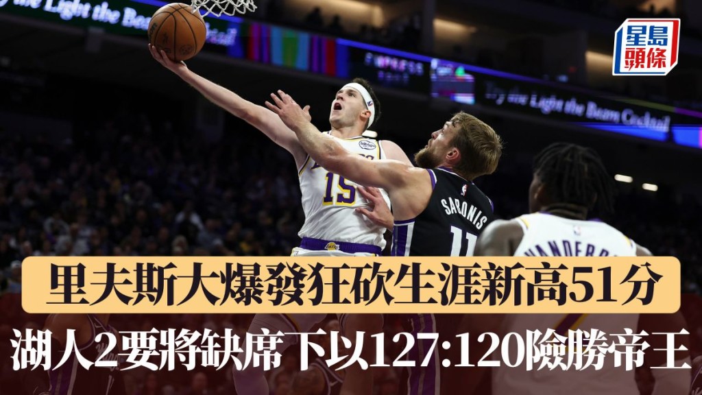 NBA|里夫斯大爆發狂砍生涯新高51分 湖人2要將缺席下以127:120險勝帝王