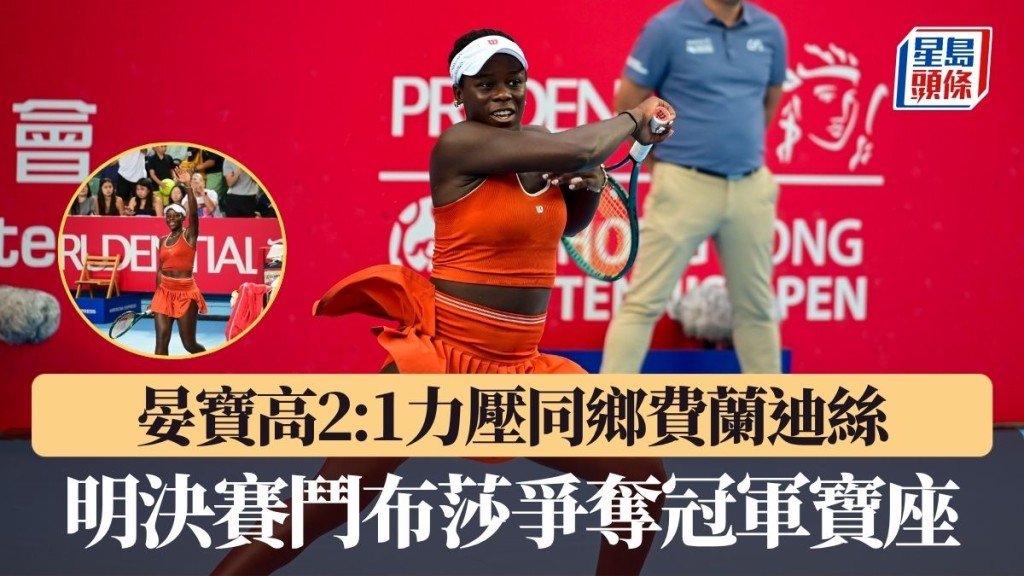 香港網球公開賽4強戰今日在維園上演「加拿大內戰」決出決賽最後席位,由2號種子費蘭迪絲(Leylah Fernadez)對上19歲的3號種子同鄉晏寶高(Victoria Mboko),最終晏寶高戰至決勝盤以2:1擊敗費蘭迪絲闖入決賽。明日決賽將會對上布莎(Christina Bucsa)爭冠。