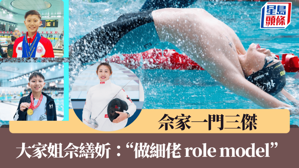 6歲開始打劍的佘繕妡(Kaylin)在國際劍擊打出名堂,獲獎無數,她的兩位細佬佘懿洭(12歲)及佘承軒(10歲)最近在泳壇漸露頭角,先後刷新香港分齡游泳紀錄,Kaylin 也說:「作為他們的家姐,做他們一個好榜樣(role model)是一個基本!」