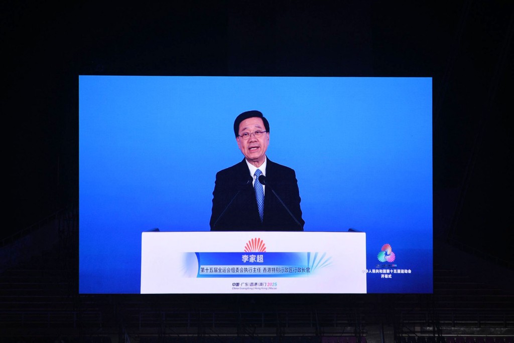 20:34 特首李家超致辭時續指本屆全運會不僅是全運會歷史上的創新事件,更充分體現國家對大灣區協同發展堅定支持。他說香港會與國家體育總局、廣東和澳門努力同心,以最高標準、最嚴格的要求為賽事做足周全的準備部署及為觀眾帶來難忘的觀賽體驗。特首亦借機邀請觀眾來香港觀賽,並承諾舉辦一個簡約、安全、精彩的全運會,展現活力澎湃的灣區風采。