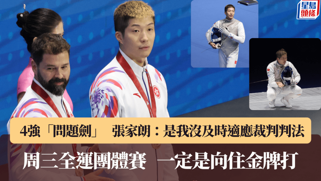 闊別國際賽接近4個月的奧運雙金得主張家朗,周日在啟德舉行的全運會男花銅牌戰對曾昭然,在3分鐘第一節未完就以15:2擊敗曾昭然,奪得他個人第2面全運個人賽銅牌(他曾於2017年那一屆奪全運團體銅牌),賽後談及4強對福建的許杰曾領先9:5下被對手一分分追過,途中出現一些「問題劍」,家朗表示:「是我沒適應裁判判法。」