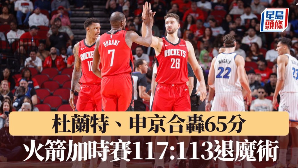 NBA|杜蘭特、申京合轟65分 火箭加時賽117:113退魔術