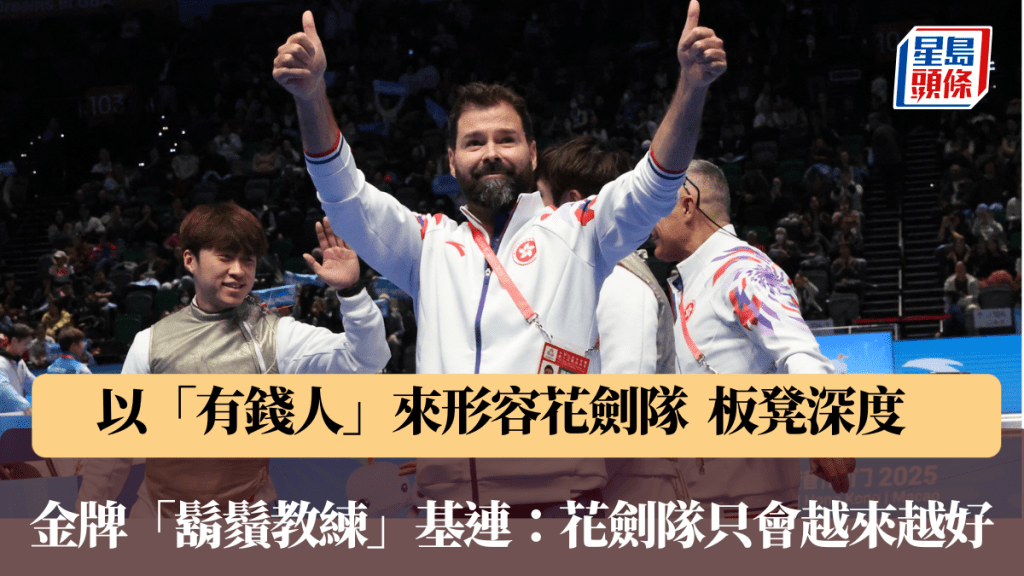 明年7月的全運會將在同一個啟德體藝館舉行更高級別的FIE世界錦標賽,Greg也說有了全運會的經驗,對港隊是一支信心的強心針:「其實我們去年(2024年5月)已在主場鬥世界盃(香港站),當時我們歷史性在『世界盃』級別奪得男花團體金牌,今次全運團體又奪金,明年的世錦賽,雖然我不能說得好實話一定衝到金,但到時若繼續有今日在現場打氣皫觀眾的支持,他們給予我們劍手無窮的能量、無窮的正面氛圍,我可以肯定是,我們劍手一定全力以赴,打出他們最好。」