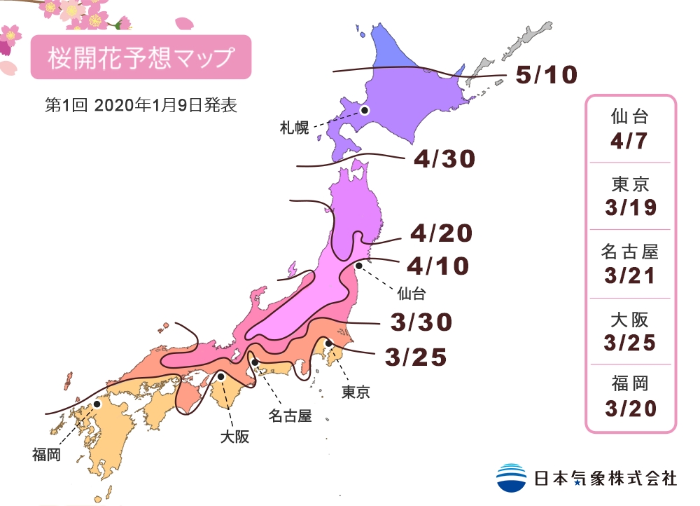 每年同樣會預測櫻花開花的日本氣象公司weathermap及日本氣象協會,目前尚未公布2020年櫻前線預測。