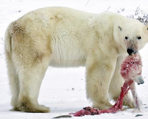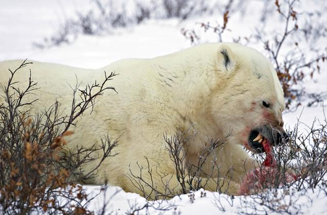 北極熊走投無路 難忍飢餓殘殺小熊填肚