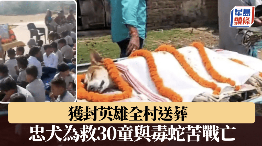 「狗是人類最忠心的朋友」,這句話再次獲得印證。印度奧里薩邦(Odisha)日前發生一宗感人至深的狗英雄事跡,一條名為「Kali」的流浪犬為保護逾30名小學生,奮不顧身與毒蛇搏鬥。儘管成功擊殺毒蛇救出學童,Kali卻不幸被咬中毒身亡。村民對其捨己救人之舉大為感動,日前全村出動為牠舉行隆重葬禮,送別這名英雄最後一程。